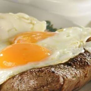 Delicioso bife grelhado com um saboroso ovo frito por cima. Acompanha: Arroz, feijão e guarnição do Dia.