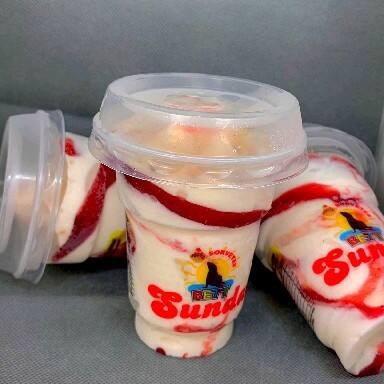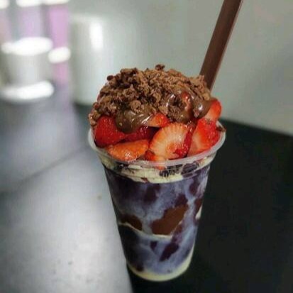 Acompanha 2 frutas ,calda de sua preferência (copo de 237 ml )
