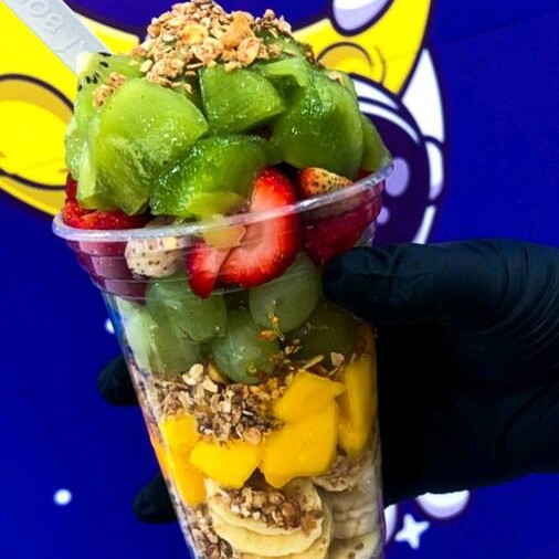 Acompanha 6 frutas ,leite condensado e granola ( pedir frutas variadas apenas 1 opção de fruta infelizmente não pode mini 3 frutas diferentes)