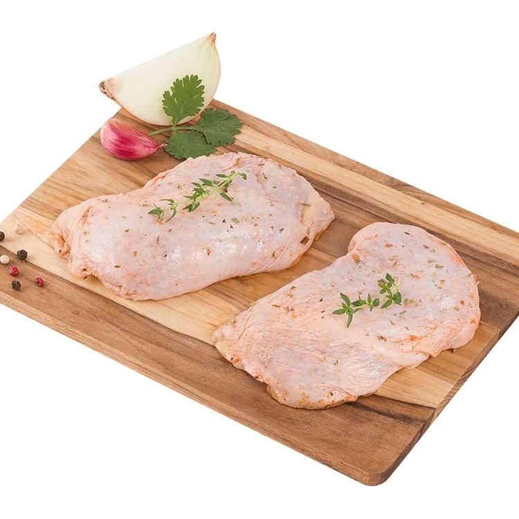 Peito de frango macio e limpo em filés.