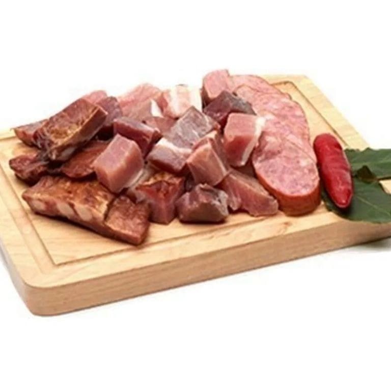 Pernil macio e fresco cortado em cubos.