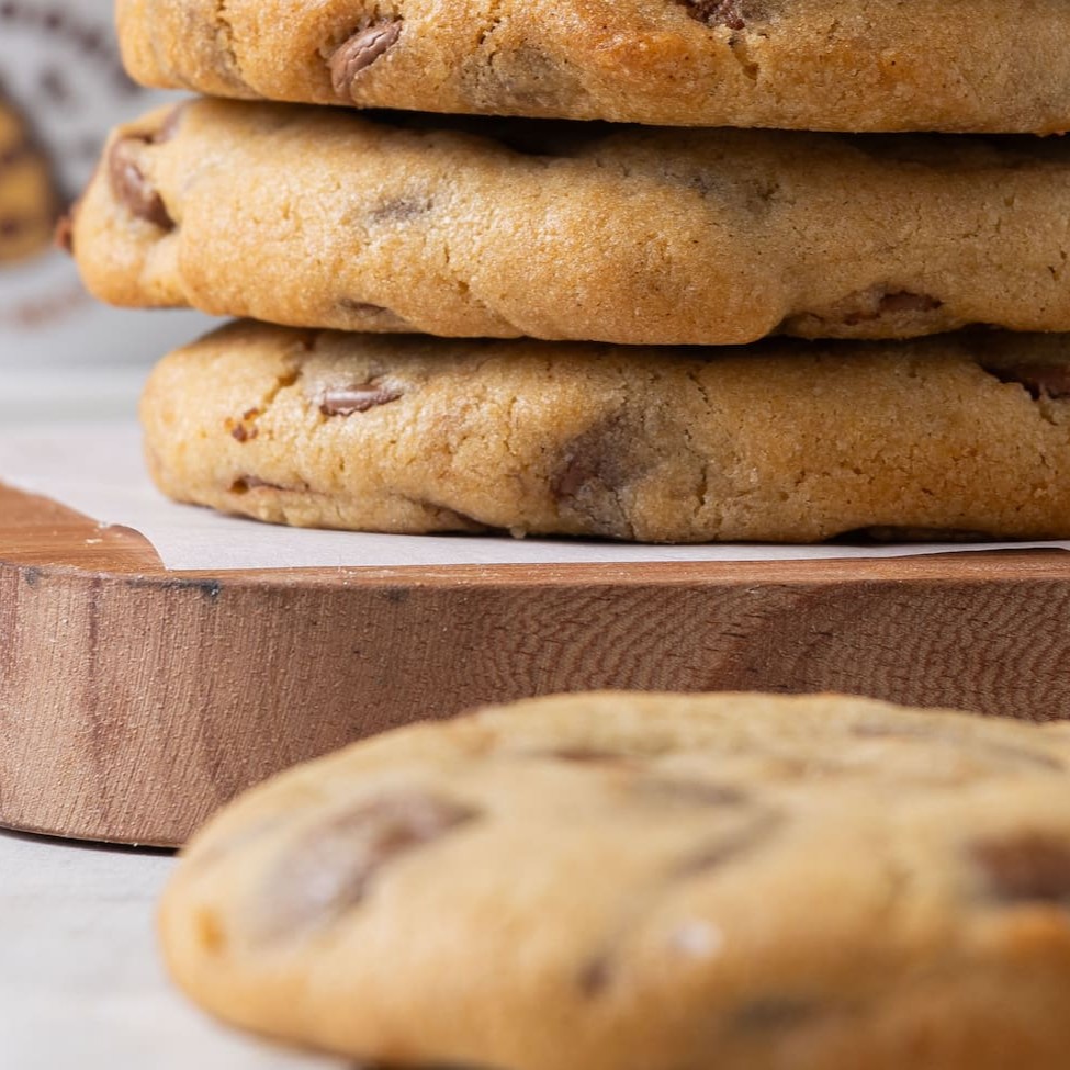 Cookie tradicional com massa de baunilha e gotas de chocolate ao leite. Assados na hora para que chegue até você ainda morninho.