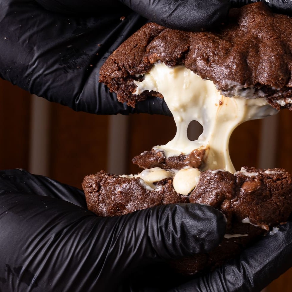 Cookie de chocolate com pedaços de chocolate nobre preto e branco. Para que chegue até você ainda quentinho, nós sempre assamos na hora do pedido.