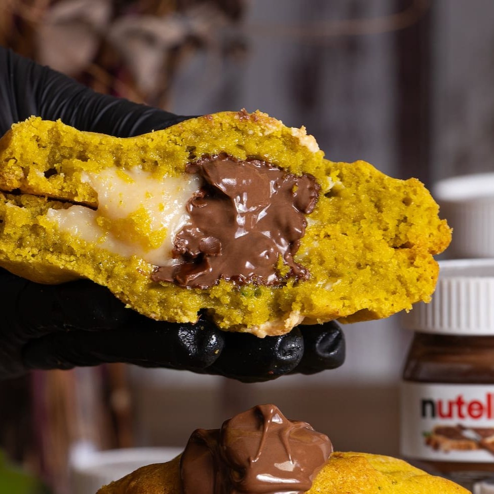 Massa verde de limão, recheio cremoso de limão, Nutella e gotas de chocolate preto e branco. Peso aproximado 100g. Assados sob pedido para que chegue até você ainda morninho.