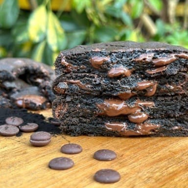 Cookie meio amargo, feito com cacau black e gotas de chocolate nobre meio amargo.