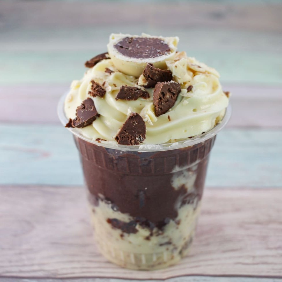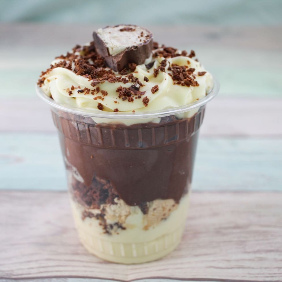 Descubra o encanto do nosso Copo da Felicidade de Sonho de Valsa. Uma combinação perfeita de Brigadeiro Cremoso de Chocolate e Brigadeiro de Ninho Cremoso c/ Sonho de Valsa Triturados , O toque final fica por conta de uma generosa cobertura de Creme de Ninho, polvilhada com pedaço de Sonho de Valsa. Uma experiência doce e inesquecível, que aguça os sentidos e provoca paladares.