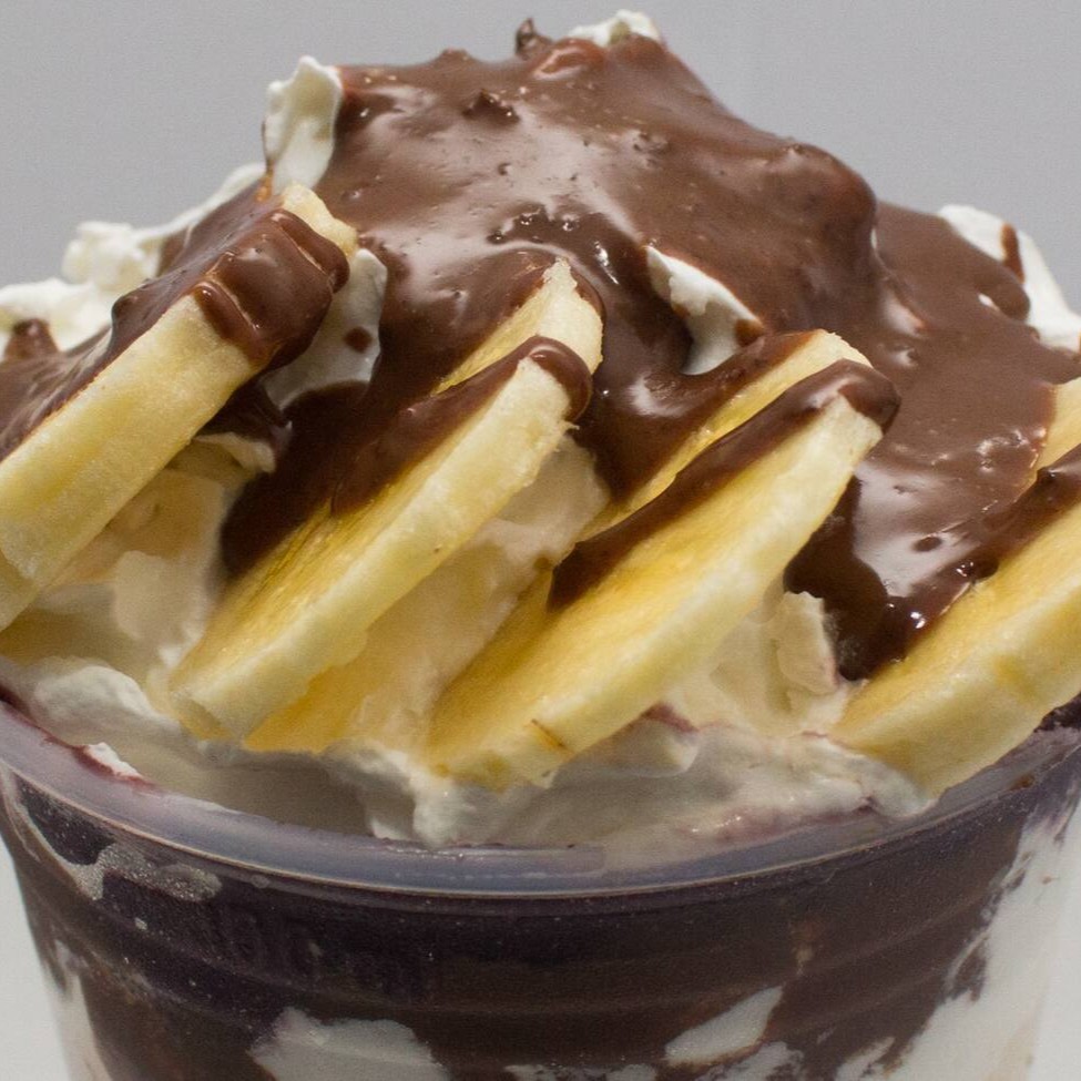 Açaí Londres 330ml (Açaí, Gelato de Ovomaltine, Banana, Creme de Ovomaltine com Pedaços Crocantes, Banana e Chantilly)