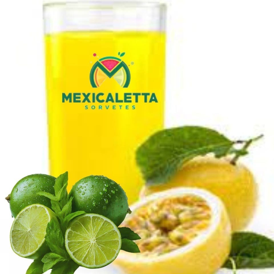 Suco de maracujá e limão natural, com gelo opcional, sem adição de adoçante ou açúcar.