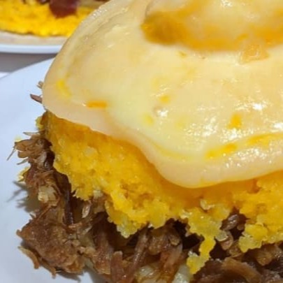 Cuscuz de 500g, feito na hora. Recheado com carne seca desfiada e mussarela ao meio e por fora. Serve 1 pessoa