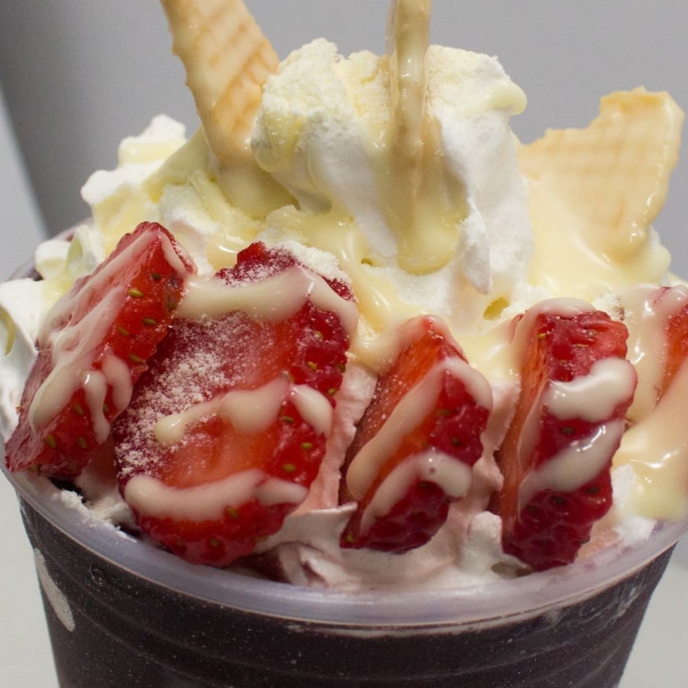 Açaí Genebra 770ml (Açaí, Chocowaffer Branco, Leite em Pó, Chantilly e Morango)