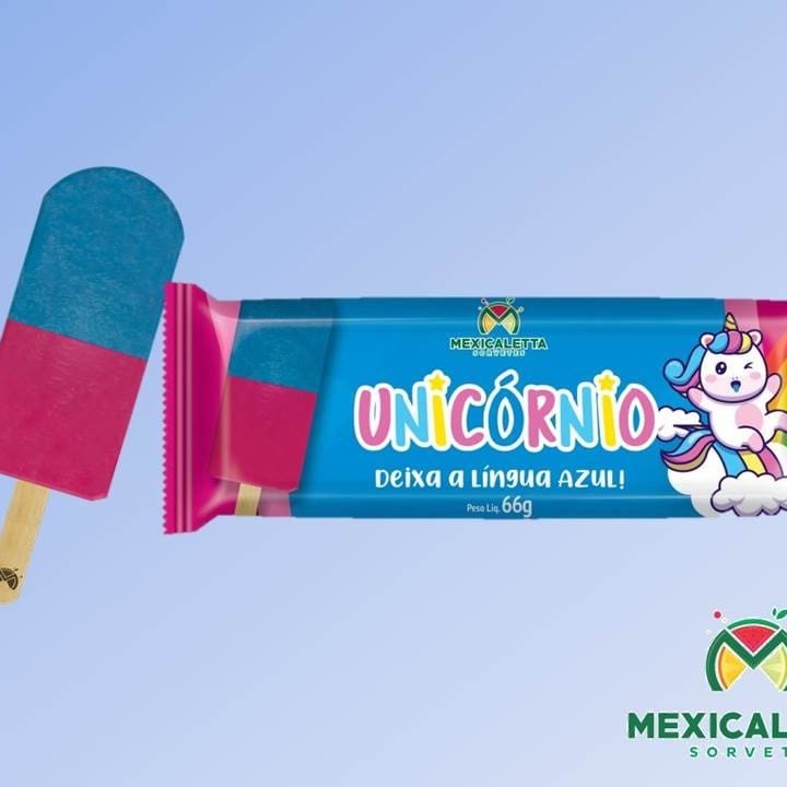 1 paleta máximo sabor baunilha; 1 paleta máximo sabor morango; 1 picolé unicórnio.