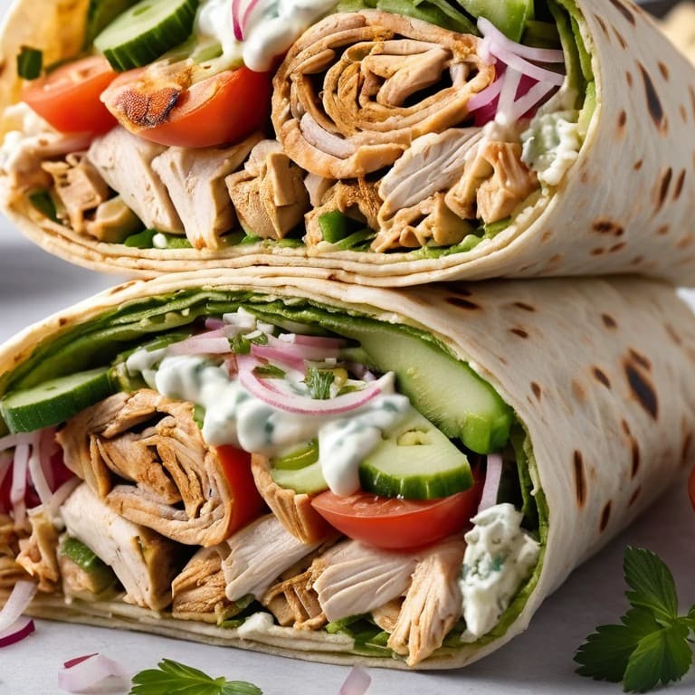 Tortilla de trigo tostada na chapa com queijo derretido, queijo cheddar cremoso, frango grelhado, alface americana, e pico de gallo (vinagrete). Peso médio entre 350g a 380g.