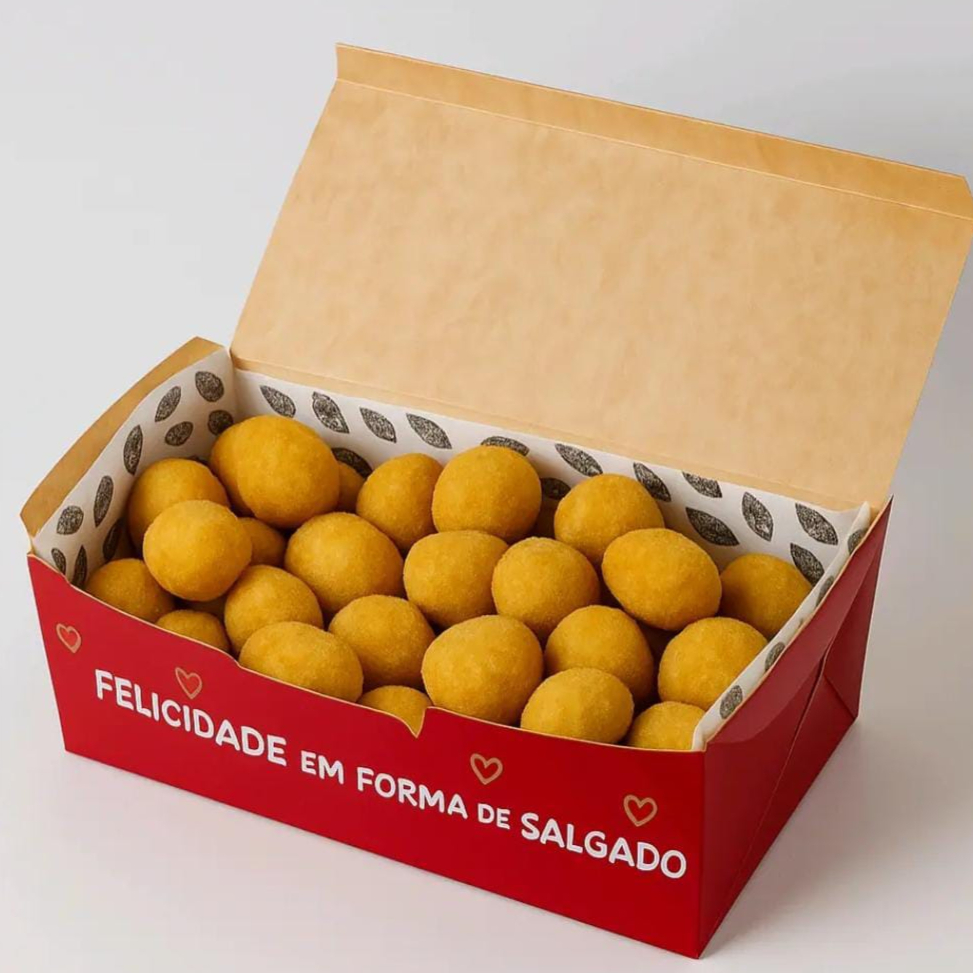 Reúna a galera! 50 Mini Salgados de festa (20g cada ), sequinhos e crocantes! Uma explosão de sabor a cada mordida.