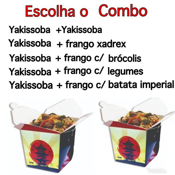 Yakissoba 500 gr + opção abaixo escolha a opção yakissoba + yakissoba yakissoba + frango xadrex Yakissoba + frango com brócolis Yakissoba + frango com legumes Yakissoba + frango com batata imperial Yakissoba +frango crispy Yakissoba + lombo crispy todos acompanha arroz yakimeshi exceto o yakissoba