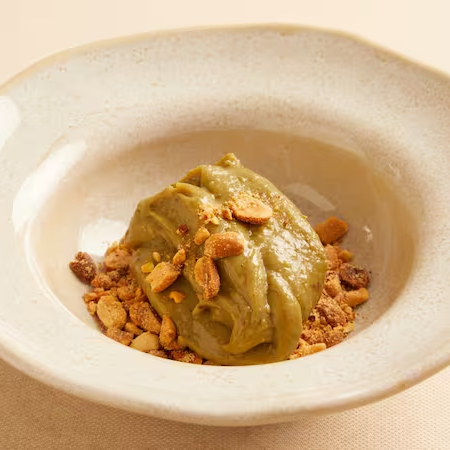 Brigadeiro de Matchá com amendoim apimentado.