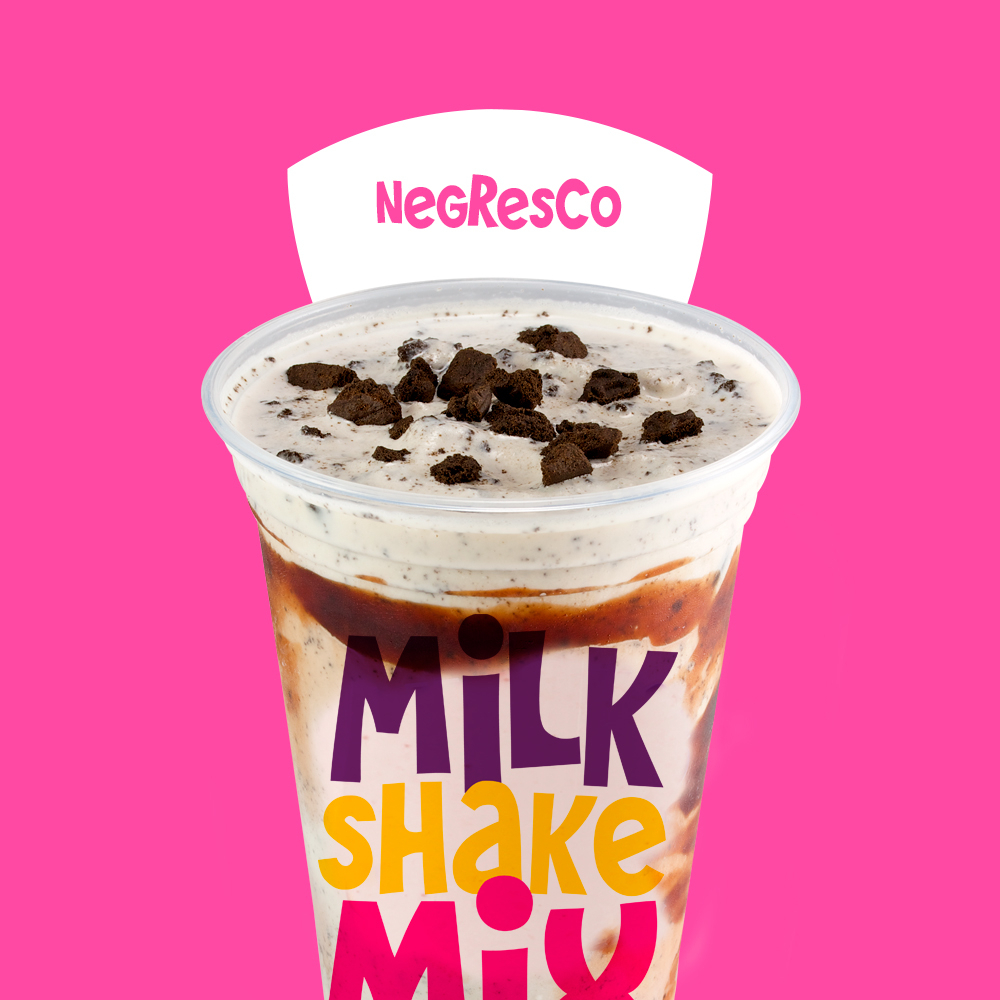 Delicioso milkshake de sorvete de baunilha com pedaços de biscoito Negresco.