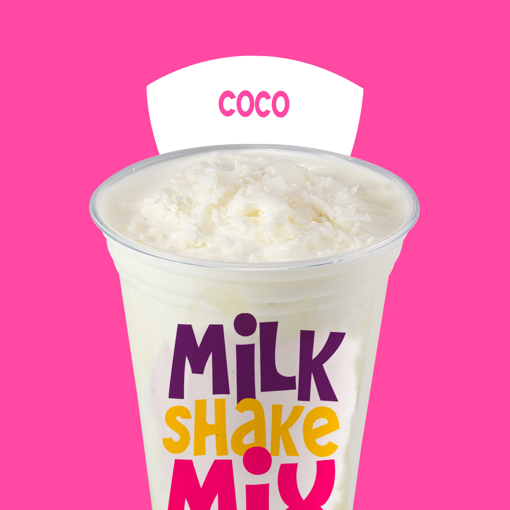 Delicioso milkshake de sorvete de baunilha com recheio de chocolate branco c/ coco, finalizado com chantilly e coco ralado.