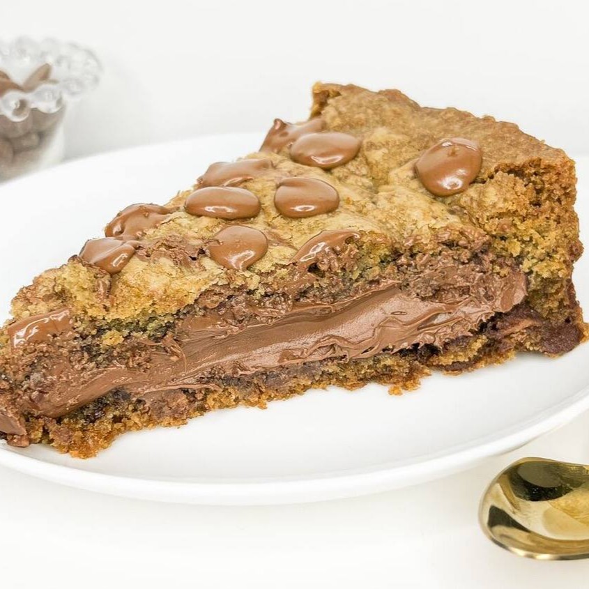 Massa de cookie amanteigada com leve toque de baunilha, gotas de chocolate nobre ao leite que derretem na boca, recheada com bastante Nutella. Se apaixone na primeira colherada Dica da mih: retire a torta do plástico e aqueça por30 seguidinhos, você irá ter uma experiência incrível Tag: cookie, torta, doces, sorvete, hambúrguer, pizza.