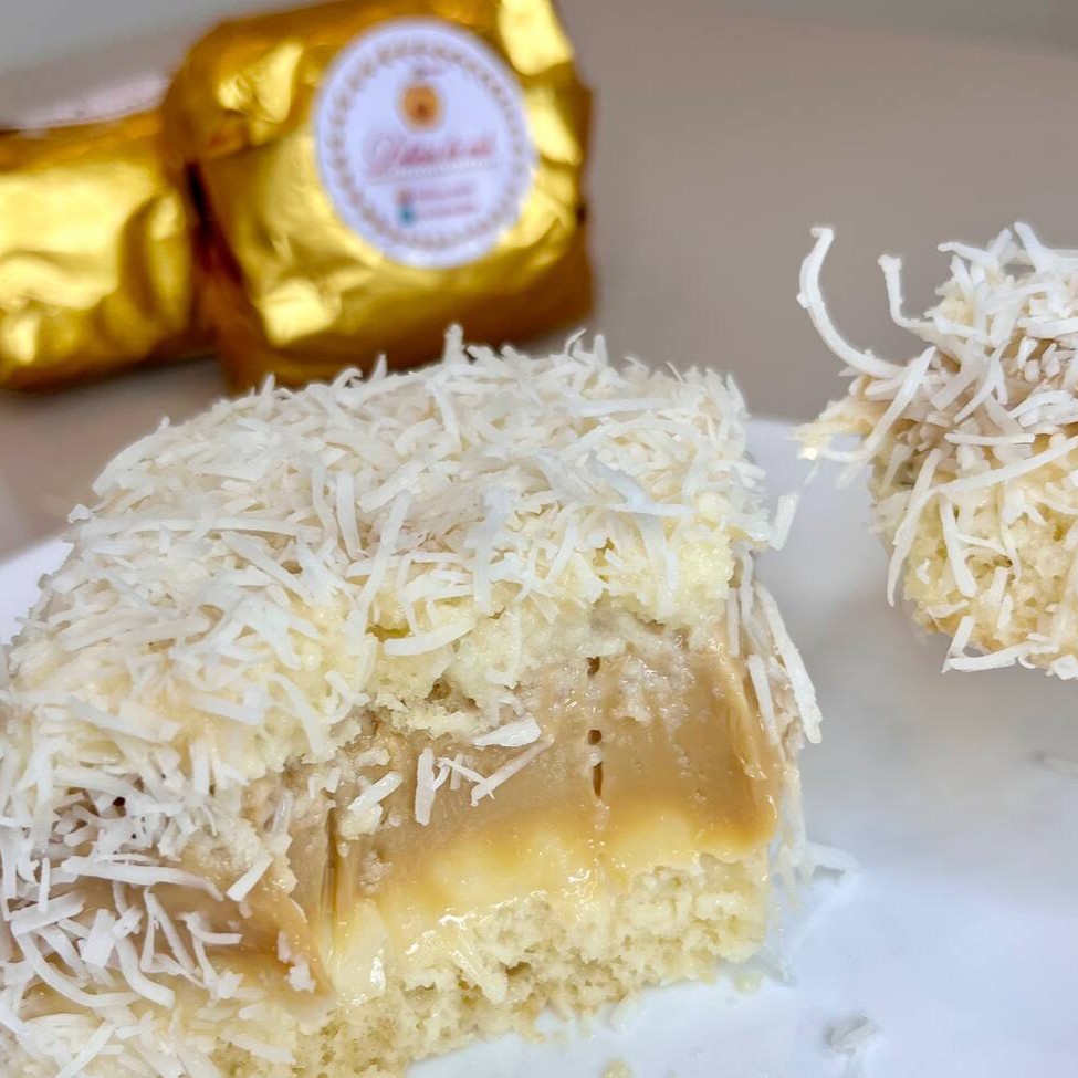 Massa branca fofinha, com calda autêntica de bolo gelado, camada de recheio cremoso de doce de leite, recheio delicioso de coco Tag: Doce de leite, bolo, coco, 0,99, cupom, bolo gelado, chocolate, docinho, Doces, pizza, hambúrguer, pão, sorvete, gelinho, almoço, geladinho, refrigerante, suco, tapioca, Oreo, Kit Kat, entrega grátis.