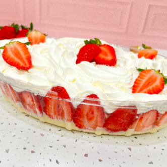 Brigadeiro branco cremoso ,pedaços de morangos frescos ,suspiro finalizado com chantilly