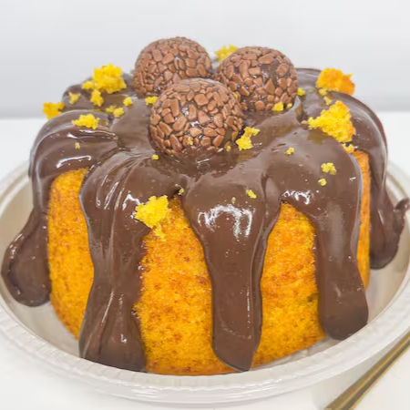 A clássica combinação em uma versão irresistível. Bolo de cenoura com brigadeiro cremoso 450g