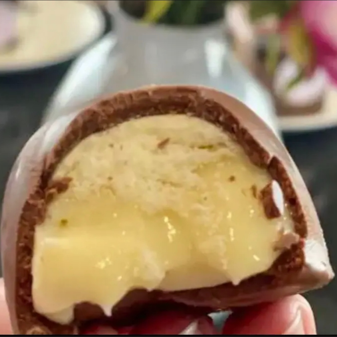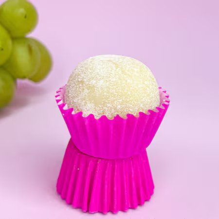 Delicioso brigadeiro branco cremoso com uvas , finalizado com ganache de chocolate ao leite