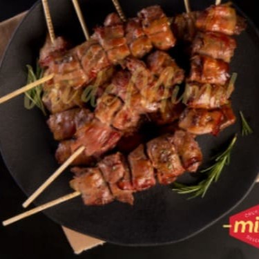 Espetinho de carne bovina, envolvido por fatias de bacon, produzido com matéria-prima selecionada e ingredientes de alta qualidade, tempero artesanal de especiarias, com sabor marcante e maciez incomparável. Perfeito para todas as horas!