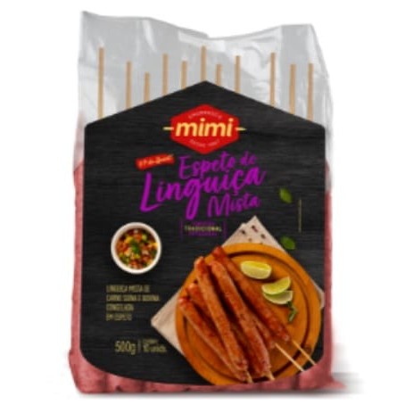 Espeto Linguiça Toscana 800g Congelado Espetinhos de linguiça de carne suína , com sabor perfeitamente equilibrado, tempero exclusivo mimi, maciez incomparável, ideal para apreciar em seus melhores momentos! pacote de 500g sendo 10 espetinhos de 50g cada unidade modo de preparo: retire o produto (resfriado) da embalagem e coloque os espetos na churrasqueira com fogo médio a alto. Vire sempre para que fique com uma cor uniforme e cuidado para não queimar o palito. dica: pode ser preparado na churrasqueira (carvão), churrasqueira elétrica, air fryer, forno elétrico.