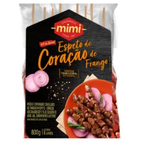Espetinhos de coração de frango, macios e suculentos, com tempero exclusivo Mimi e matéria-prima selecionada, ideal para apreciar em seus melhores momentos! pacote com 500g sendo 7 espetinhos . modo de preparo: retire o produto (resfriado) da embalagem e coloque os espetos na churrasqueira com fogo médio a alto. Vire sempre para que fique com uma cor uniforme e cuidado para não queimar o palito. dica: pode ser preparado na churrasqueira (carvão), churrasqueira elétrica, air fryer, forno elétrico.