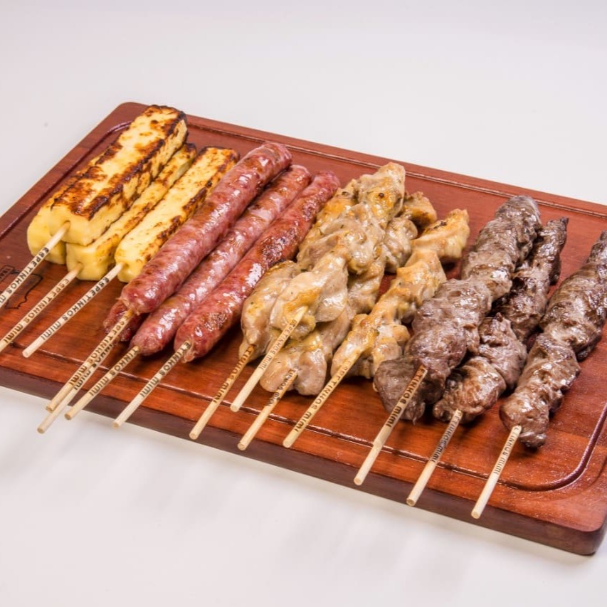 Combo Premium: 4 espetos de linguiça 4 espetos bovino 4 espetos de queijo coalho 4 pães de alho tradicional