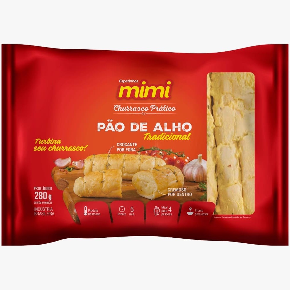 Pão de alho tradicional resfriado. Embalagem de 280gr contendo 04 baguetes