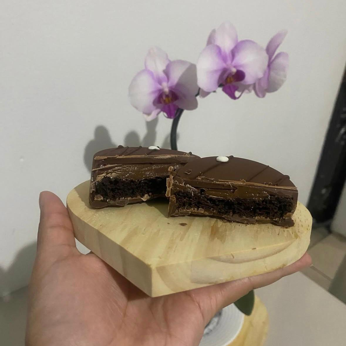 Nosso pão de mel é pura tentação! Massa super macia e chocolatuda, recheada com um brigadeiro cremoso e generoso, envolvida por uma casquinha de chocolate que dá aquela mordida perfeita.