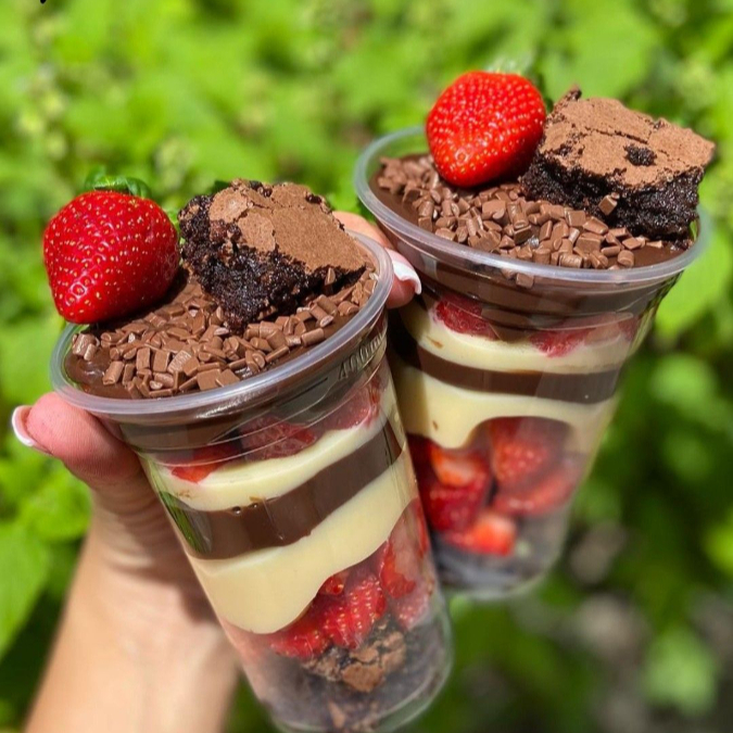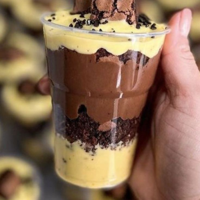 Para os apaixonados por chocolate! Camadas generosas de brigadeiro cremoso, creme de Ninho super aveludado e pedaços macios de brownie, finalizado com uma cobertura intensa de chocolate e brownie por cima. Uma sobremesa equilibrada, cremosa e extremamente chocolatudo do começo ao fim!