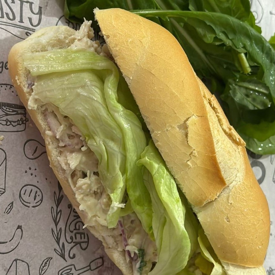 Lanche delicioso, acompanha um frango desfiado maravilhoso bem suculento, com alface americana. Feito no pão tipo baguete. Serve aproximadamente 1 pessoa. Pesa aproximadamente 200g.