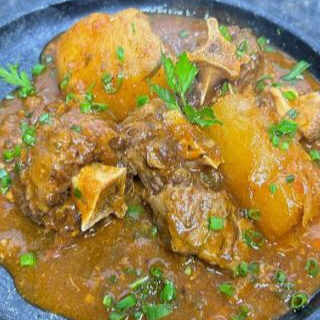 DELICIOSA CARNE COZIDA COM CENOURA E BATATAS, ACOMPANHA ARROZ, FEIJÃO E SALADA