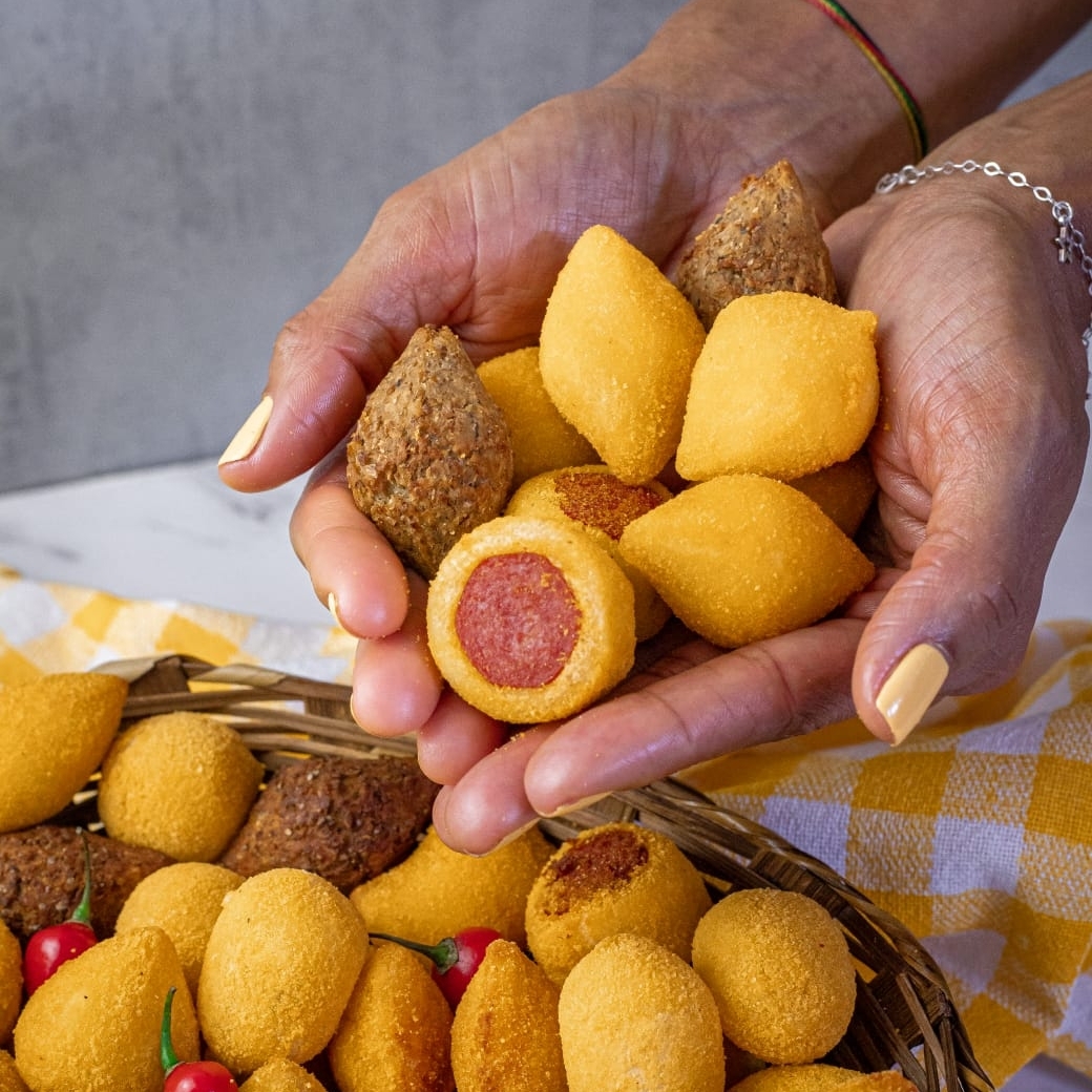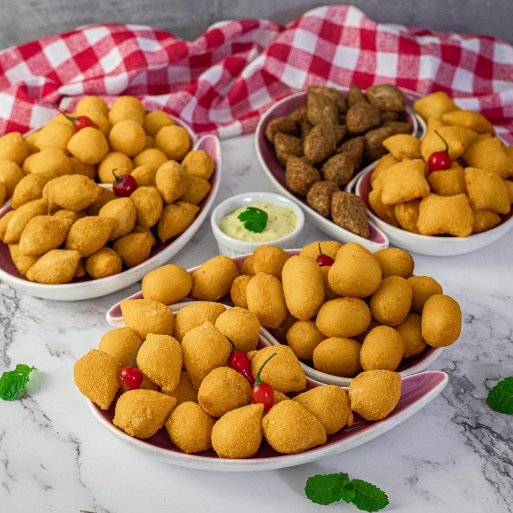 15 Coxinhas (frango) 20g + 15 Kibes 20g