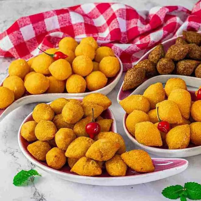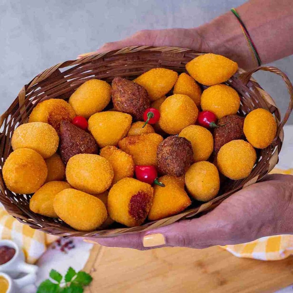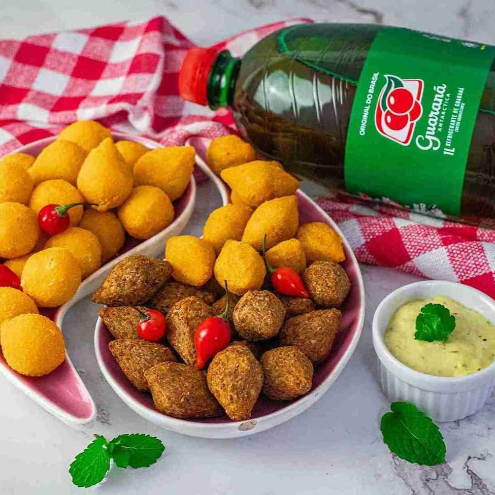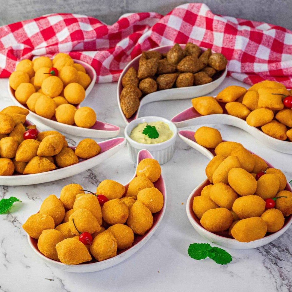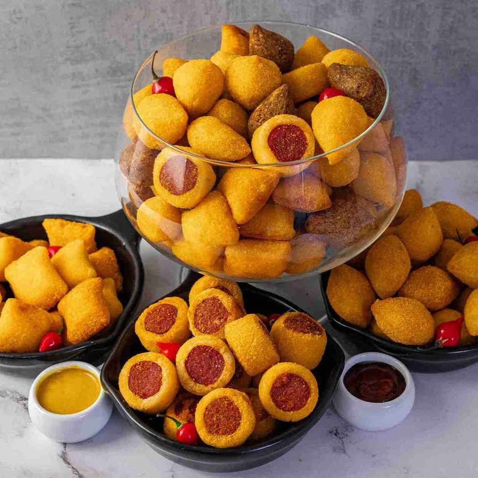 Irresistível Combo com 50 Salgados Sequinhos e Fritos na Hora. Perfeita para quem Ama Compartilhar.