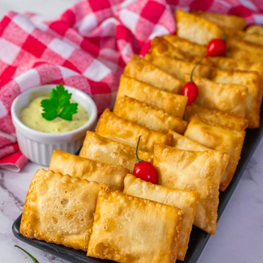 50 Mini Pastéis de 10g. Crocantes, Sequinhos por fora e suculentos por dentro.
