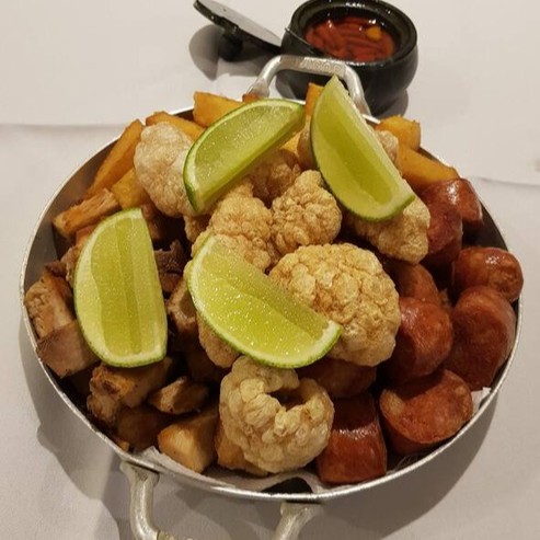 Costelinha, linguiça, pururuca e batata frita