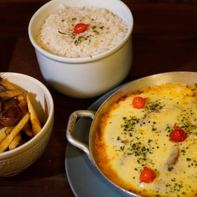 Acompanha farofa da casa, vinagrete, pimenta biquinho, aioli e torradas