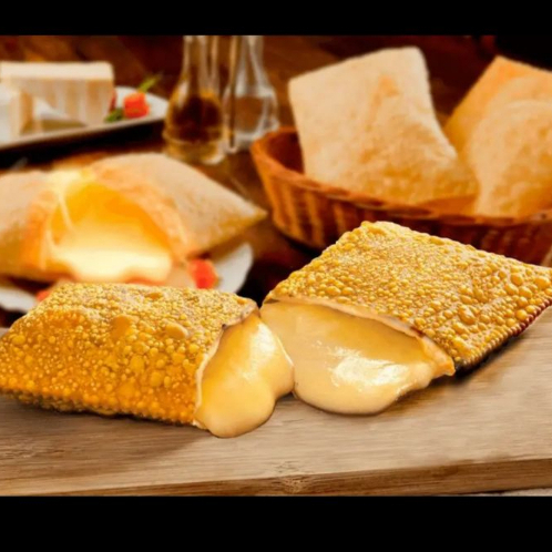 Delicioso Pastel de 4 Queijos com Mussarela, Cheddar, Parmesão e Catupiry Cremoso, recheadissimo, crocante, sequinho e frito na hora.