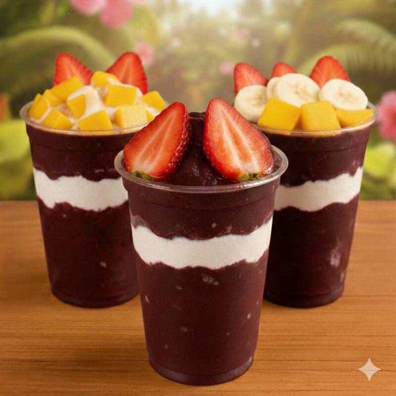 Monte o açaí do jeitinho que você ama! Escolha seus acompanhamentos favoritos e crie a combinação perfeita em 700ml de puro sabor e refrescância.