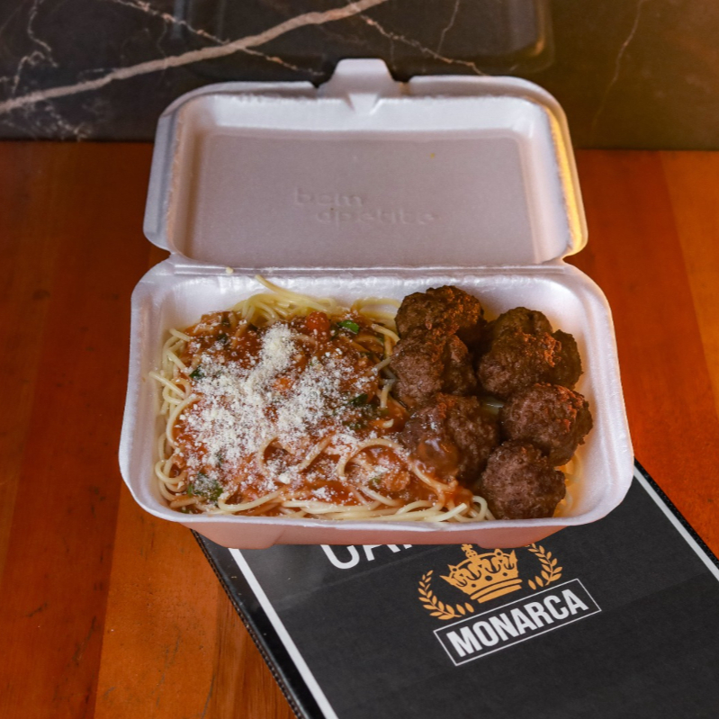 Macarrão, Com um delicioso molho vermelho e deliciosas almôndegas.