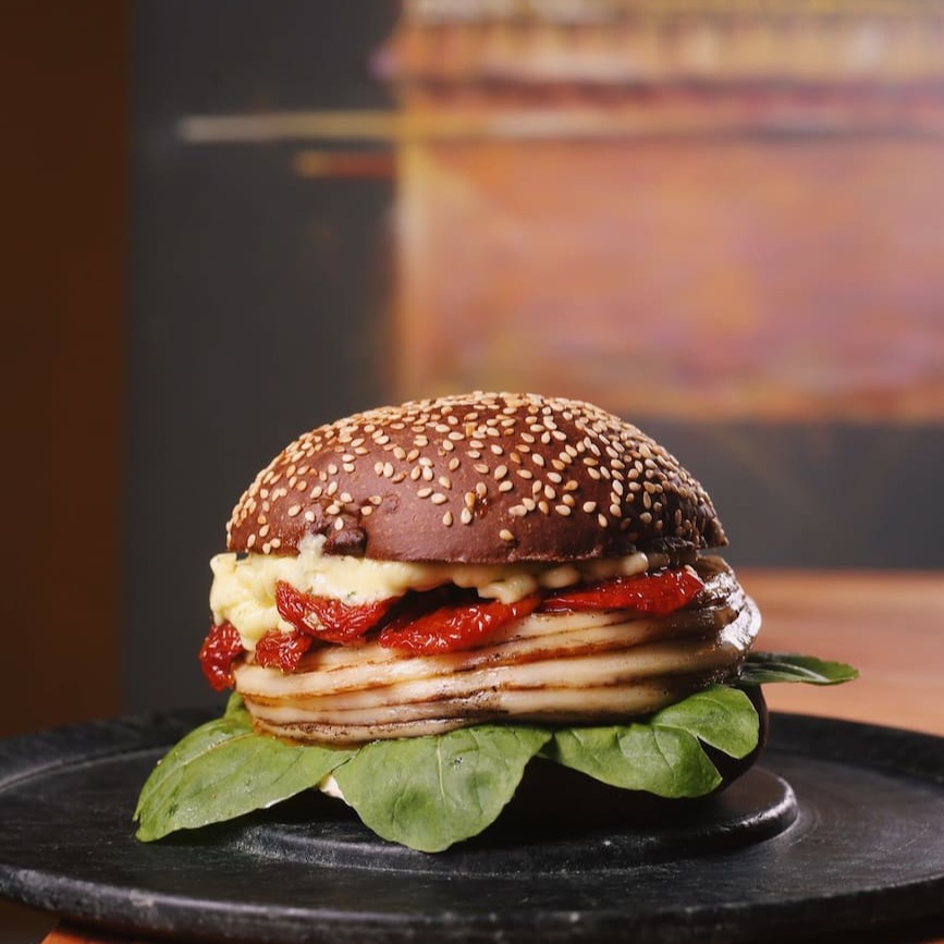 Pão australiano, queijo coalho 200g, maionese da casa, rúcula e tomate seco.