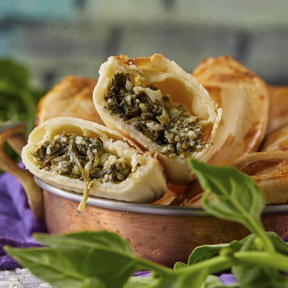 Espinafre com queijo branco. Uma combinação perfeita!! Procure pela sigla Es na borda da massa para encontrar sua empanada.