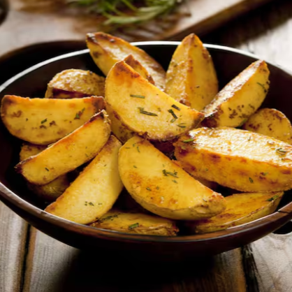 Porção de deliciosas batatas doce e salgada, assadas com casca, azeite e alecrim!