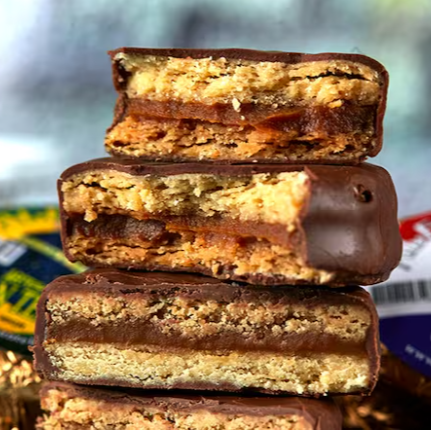 Autêntico alfajor argentino, com chocolate e doce de leite.