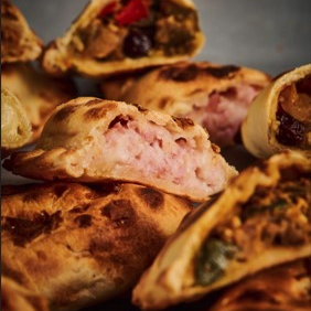 Palmito e queijo mussarela. Melhor levar duas logo!!! Procure pela sigla Pa na borda da massa para encontrar sua empanada.