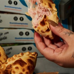 Presunto e queijo mussarela. Combinação clássica e deliciosa!!! Procure pela sigla Pq na borda da massa para encontrar sua empanada.
