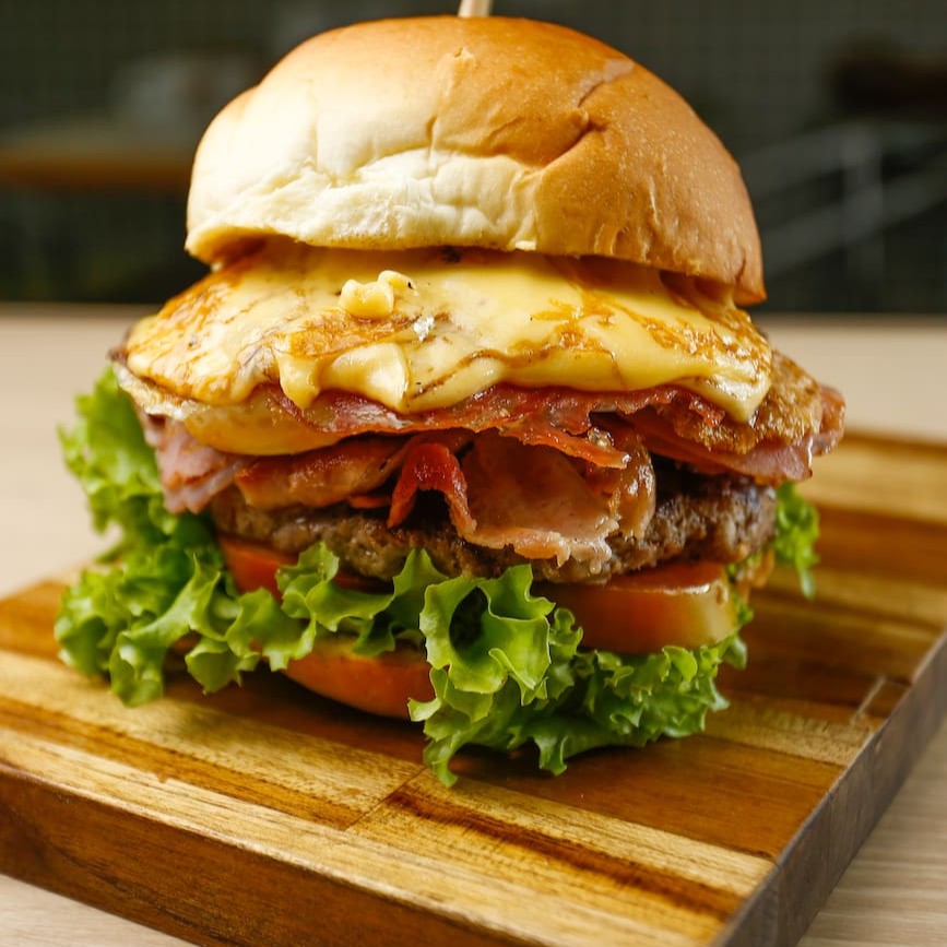O 'Chesse Tudo' é um hambúrguer clássico, repleto de sabor e suculência. A exuberância do bacon crocante se une harmoniosamente ao presunto tenro, enquanto o queijo derretido se funde ao pão quentinho, trazendo uma experiência gastronômica única. A leveza da alface e o frescor do tomate proporcionam um contraste perfeito, e o ovo, com sua gema macia, adiciona uma textura rica e aveludada ao conjunto. Para finalizar, uma generosa camada de maionese cremosa, que dá o toque final a este hambúrguer cheio de personalidade e sabor. Experimente e se surpreenda!
